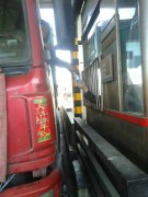 2015-05-26联合路政普法宣传推行依法治路措施 为进一步加强路政法规宣传,提高司机法律意识,推进依法治路措施,营造高速 公路良好的通行环境。2015年5月26日,国投公司路产管理部联合延庆